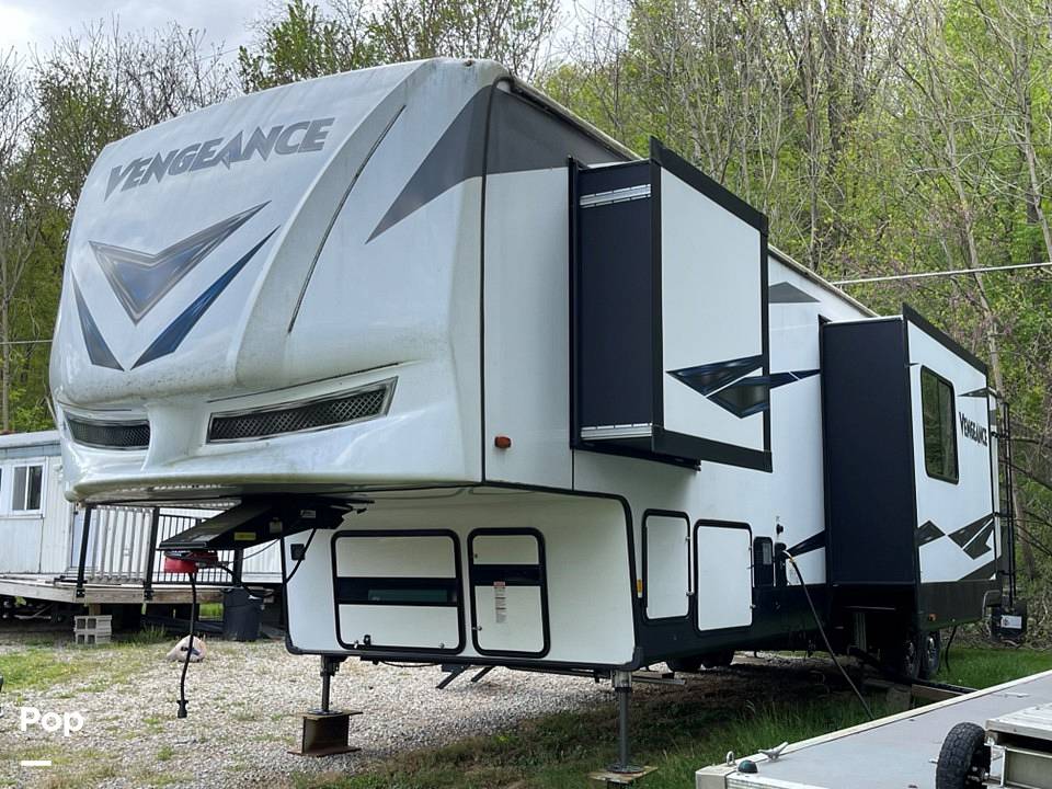 Introducing the 2019 Forest River Vengeance 345A13 Fifth Wheel, a remarkable blend of luxury and functionality designed to elevate your travel experiences. This meticulously crafted RV offers a spacious and comfortable environment, perfect for families or groups seeking adventure without compromising on comfort. With a length of 33 feet, this fifth wheel provides ample space for relaxation and entertainment, ensuring every journey is as enjoyable as the destination.