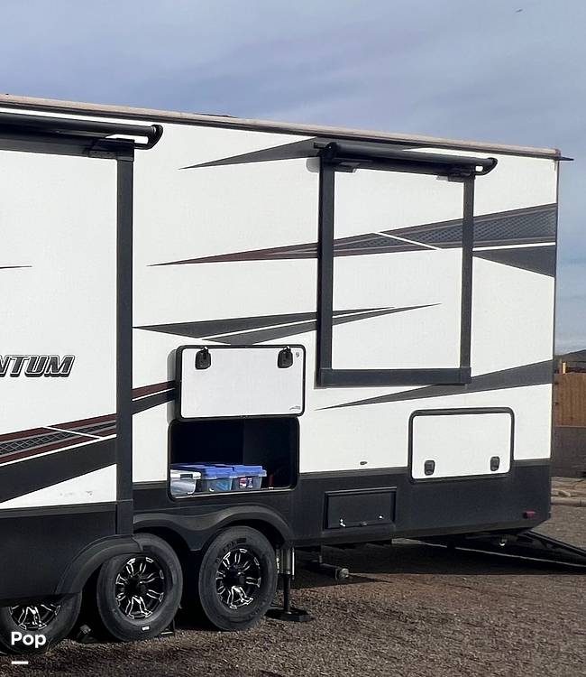 Outside, the Momentum 376TH continues to impress with its robust construction and sleek design. The exterior features ample storage space for all your gear, making it easy to bring along everything you need for your travels. Whether you're exploring the great outdoors or enjoying a weekend at the campsite, this RV is equipped to handle it all. Experience the freedom of the open road in style and comfort with the 2019 Grand Design Momentum 376TH Fifth Wheel. Your next adventure awaits!