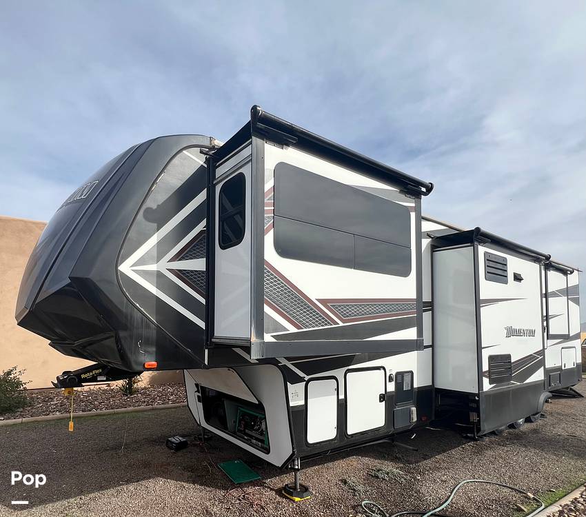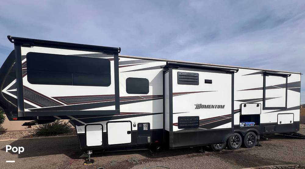 Discover the ultimate in luxury and adventure with the 2019 Grand Design Momentum 376TH Fifth Wheel. This meticulously crafted RV is designed to elevate your travel experience, offering a perfect blend of comfort, style, and functionality. With a spacious interior that can comfortably sleep up to six people, this RV is ideal for family getaways or trips with friends. Measuring an impressive 34 feet in length, the Momentum 376TH provides ample space for everyone to relax and enjoy the journey.
