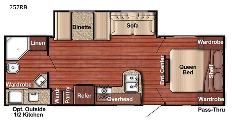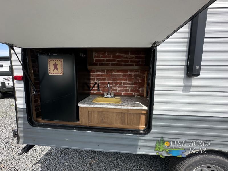 The Trailmaster Ultra-Lite 257RB features a single slide-out, which significantly enhances the living space, providing a roomy and comfortable interior. Inside, you will find accommodations to sleep up to five people, making it perfect for family trips or getaways with friends. The intelligently designed floor plan includes a cozy sleeping area, a fully equipped kitchen, and a spacious bathroom, ensuring all the comforts of home while on the road. The high-quality materials and finishes throughout the trailer reflect Gulf Stream's commitment to durability and style.