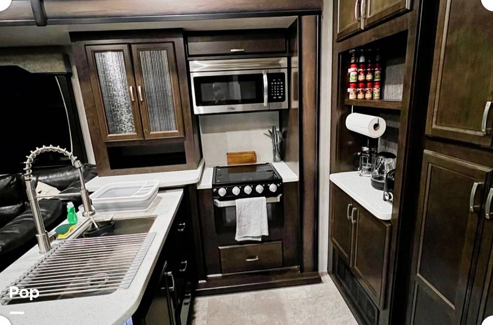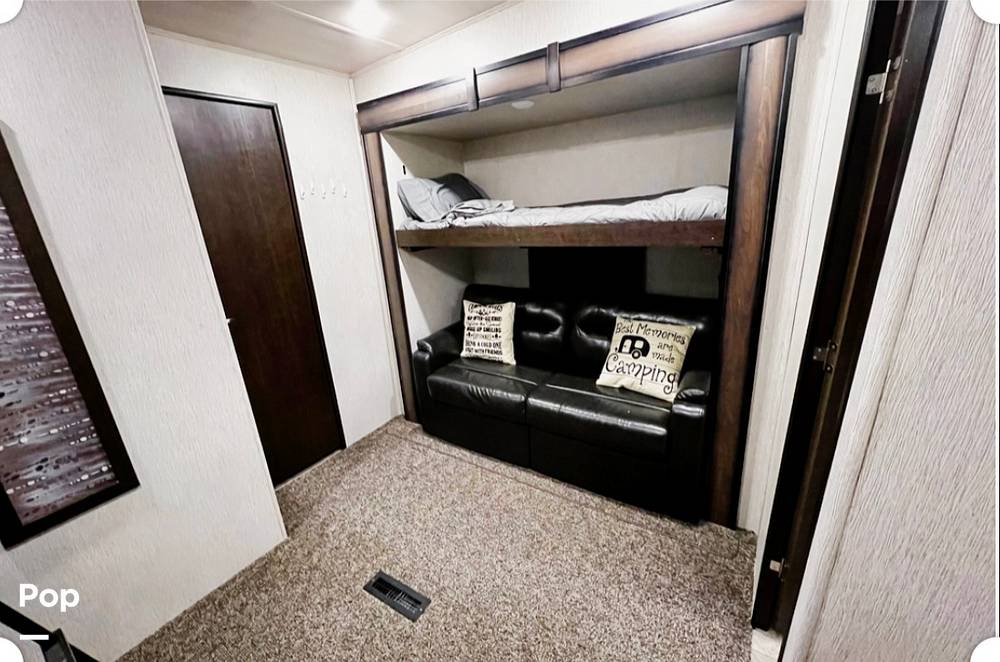 Inside, you'll find a cozy haven that comfortably sleeps up to 8 people, making it ideal for family trips or getaways with friends. The well-appointed interior features a master bedroom with a plush queen-sized bed, a bunkhouse for the kids or guests, and additional sleeping areas in the living space. The fully equipped kitchen comes with modern appliances, allowing you to whip up delicious meals on the road. Plus, the inviting living area is perfect for movie nights or simply lounging with a good book.