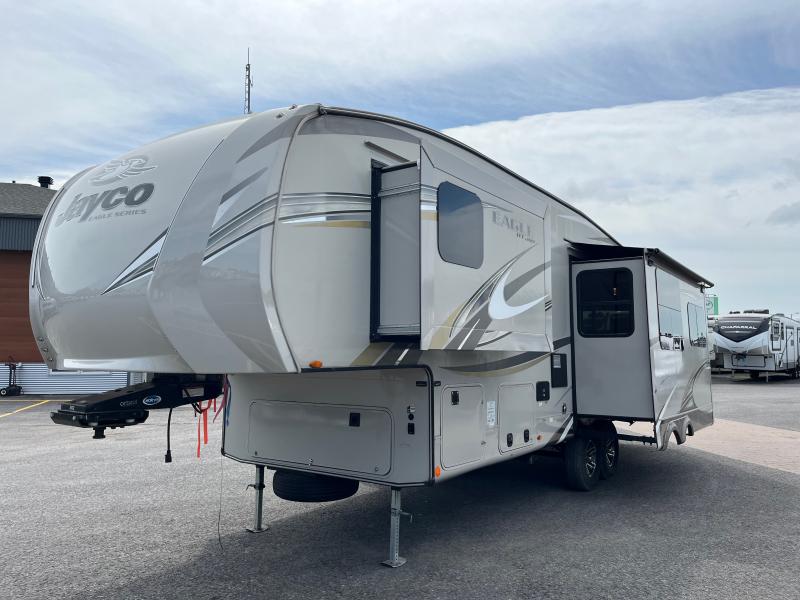 Introducing the 2019 Jayco Eagle 28.5RSTS Fifth Wheel, a remarkable blend of luxury and functionality designed to elevate your travel experiences. This meticulously crafted RV spans 28 feet in length, offering a spacious and comfortable environment for both short getaways and extended adventures. With its sleek design and robust construction, the Jayco Eagle is a testament to quality and innovation, ensuring a reliable and enjoyable journey every time.