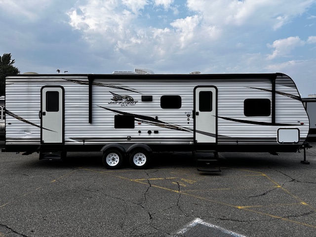 Discover the perfect home away from home with the 2019 Jayco Jay Flight SLX 287BHS Travel Trailer! This spacious and versatile RV is designed to make your family adventures comfortable and memorable. Measuring 28 feet in length, this travel trailer offers ample space for everyone to relax and enjoy. With a single slide-out, the interior opens up to provide even more room for your family and friends to gather and create lasting memories.