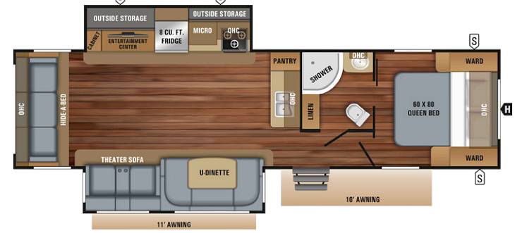 The Jayco White Hawk 31RL is built with quality and durability in mind, featuring a robust construction that stands up to the rigors of the road. The exterior boasts a sleek design with ample storage compartments, providing plenty of room for all your gear and essentials. Additionally, the trailer is equipped with modern amenities such as air conditioning, heating, and a full bathroom with a shower, ensuring a comfortable stay no matter the weather. Don't miss the opportunity to own this exceptional travel trailer, ready to take you on countless memorable journeys.