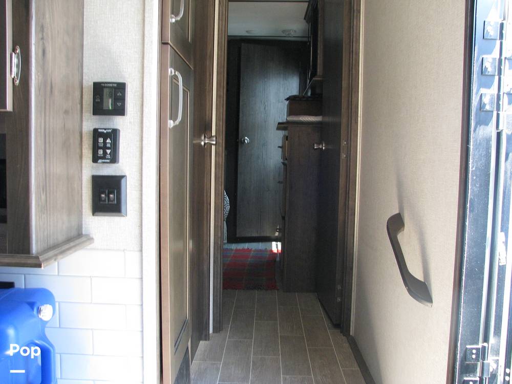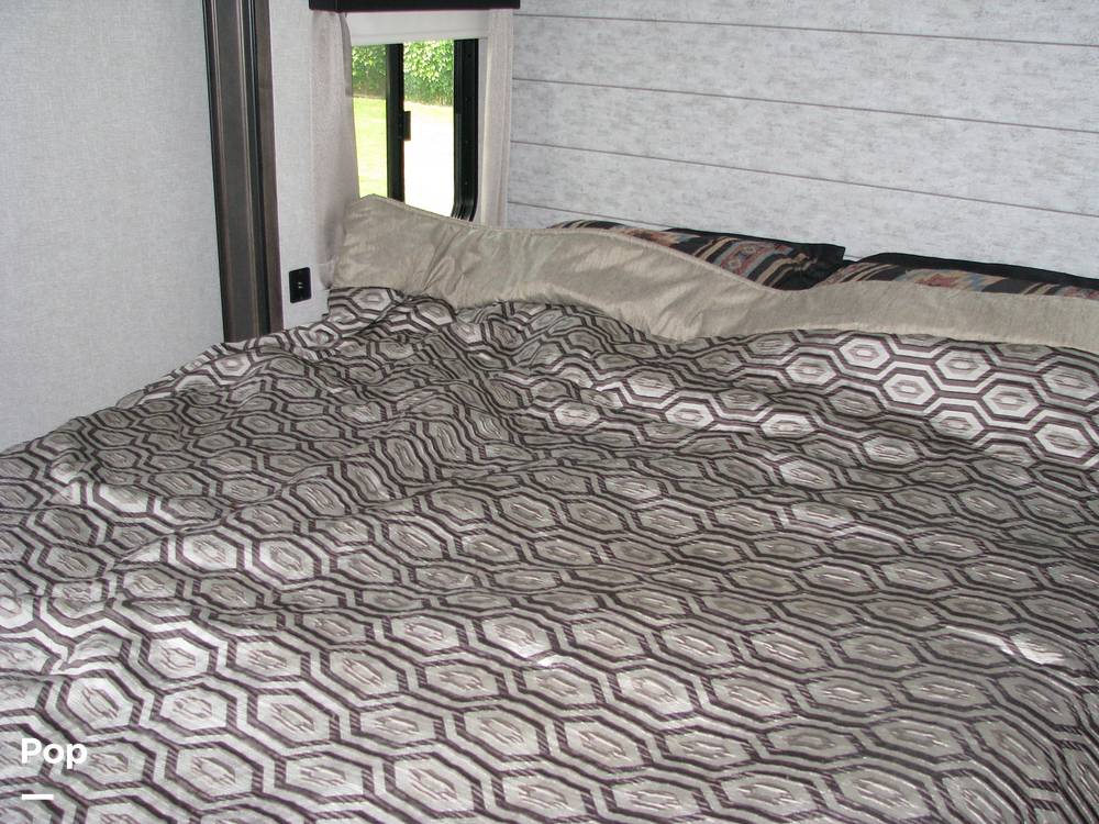 Inside, you'll find a well-designed living area that feels more like a chic apartment than an RV. The kitchen is equipped with all the essentials, including a fridge, stove, and microwave, making meal prep a breeze. The living space is perfect for unwinding, with comfy seating and a flat-screen TV for those movie nights under the stars. The bedroom offers a plush queen-sized bed, ensuring a restful night's sleep, while the convertible sofa provides extra sleeping space for guests.