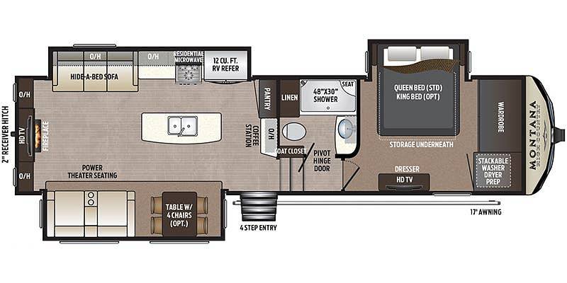 But that's not all! This Keystone Montana High Country is built for convenience and ease of use. With ample storage space, you can bring along all your gear without feeling cramped. Plus, the modern design and high-quality finishes make this RV as stylish as it is functional. Whether you're planning a weekend getaway or a cross-country adventure, this fifth wheel is ready to roll. Don't miss out on the chance to own this fantastic RV and start making memories on the open road!