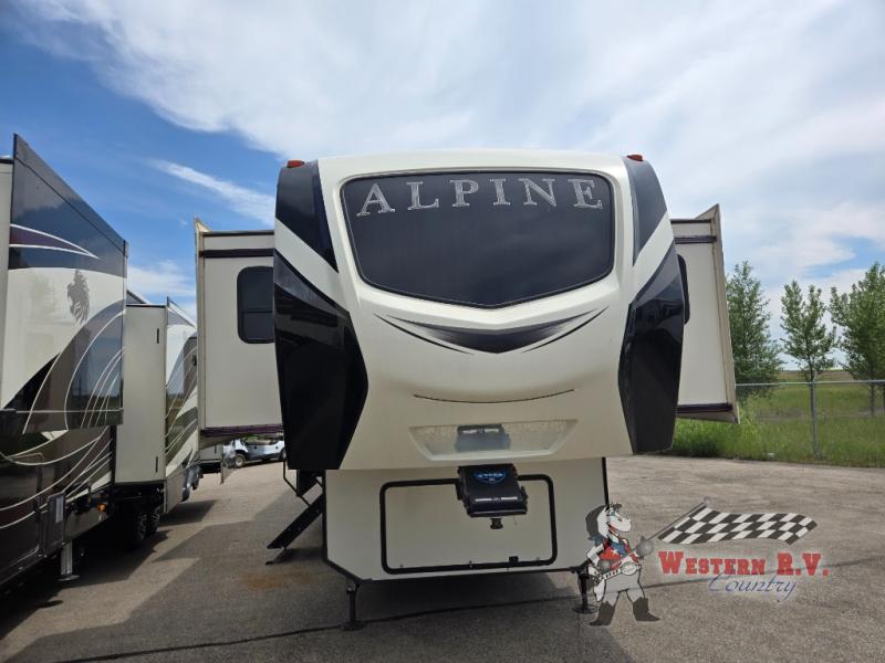 Step inside to discover a meticulously crafted interior featuring high-end finishes and thoughtful design elements. The Alpine 3700FL boasts a front living area that exudes comfort, complete with plush seating and a state-of-the-art entertainment system. The kitchen is a culinary enthusiast's dream, equipped with modern appliances, including a large refrigerator, a three-burner stove, and a spacious pantry, all designed to make meal preparation a breeze. The dining area comfortably accommodates family and friends, ensuring memorable dining experiences on the road.