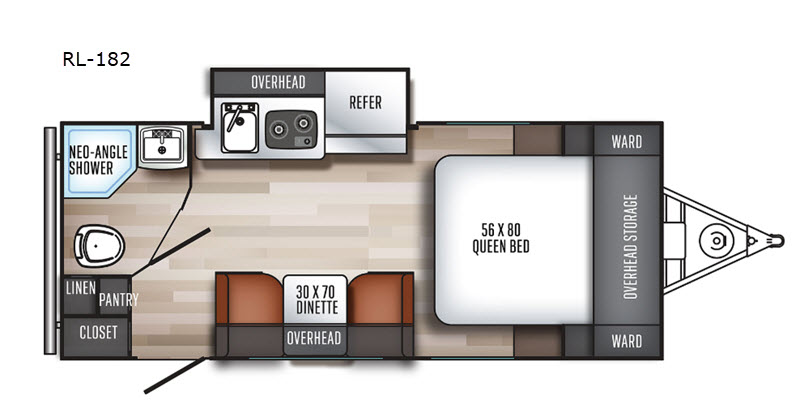 The Real-Lite Mini RL-182 features a single slide-out, maximizing your living space without adding extra bulk. Inside, you'll find accommodations to comfortably sleep three, making it perfect for a small family or a couple with a guest. The interior is thoughtfully designed to offer a cozy atmosphere, with ample storage and modern amenities to ensure a comfortable stay, whether you're parked at a campsite or off the beaten path.