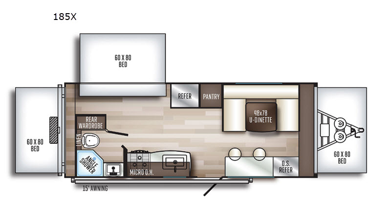Measuring approximately 21 feet in length, the SolAire 185X is compact enough for easy towing, yet spacious enough to provide all the comforts of home. With a weight of 1,877 kilograms, it strikes the perfect balance between portability and stability, making it an ideal choice for both seasoned travelers and those new to the RV lifestyle. The hybrid design features expandable sleeping areas, maximizing interior space without compromising on comfort or convenience.