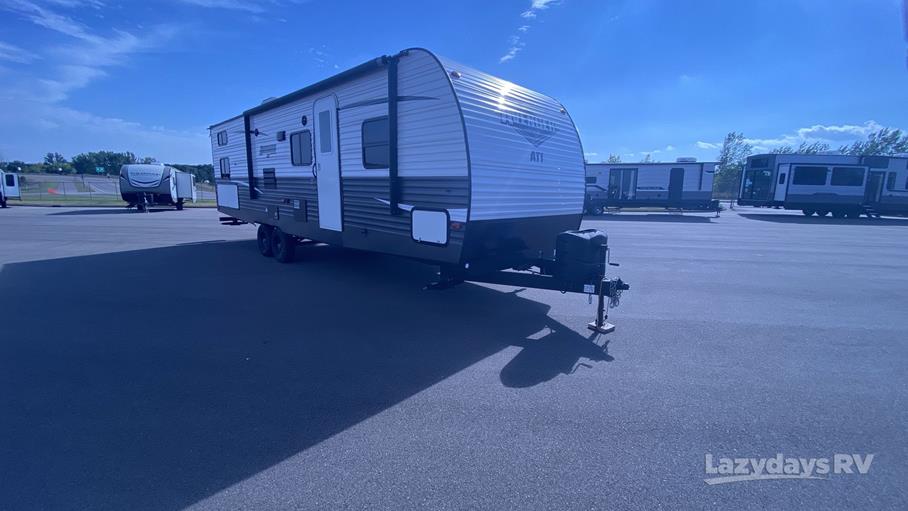 Built with durability and convenience in mind, the Avenger ATI 27BTS boasts a robust construction and thoughtful design elements. The exterior features a large awning, providing shade and shelter for outdoor activities, while ample storage compartments ensure you have plenty of space for all your gear. With a dry weight of approximately 2,900 kilograms and a payload capacity of around 1,100 kilograms, this travel trailer is both sturdy and versatile. Whether you're embarking on a weekend getaway or an extended road trip, the 2019 Prime Time Avenger ATI 27BTS is your ticket to unforgettable adventures.