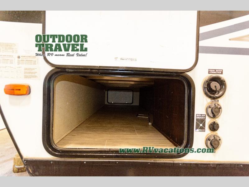 Step inside to find a thoughtfully laid-out living space, enhanced by a single slide-out that expands your living area, providing ample room for relaxation and entertainment. The well-appointed kitchen features modern appliances and plenty of storage, allowing you to prepare delicious meals with ease. The cozy sleeping arrangements include a master bedroom with a comfortable bed, bunk beds for the kids, and convertible sleeping areas to ensure everyone has a restful night's sleep. The stylish and functional bathroom ensures convenience and privacy, even when you're miles away from civilization.