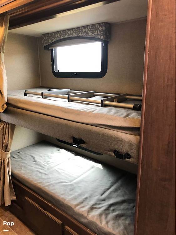 This RV boasts a fuel capacity of 208 liters, ensuring you can travel long distances without constantly stopping for gas. With a length of 27 feet, it's compact enough to maneuver easily, yet roomy enough to provide all the comforts of home. Inside, you'll find a well-equipped kitchen, a cozy dining area, and plenty of storage space for all your gear. The sleeping arrangements include a queen bed, bunk beds, a convertible sofa, and a dinette that transforms into a bed, making it versatile for any group configuration.