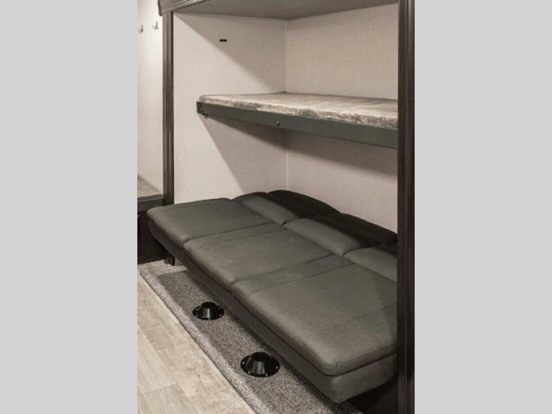 Inside, you'll find accommodations to sleep up to 11 people, making it perfect for large families or group trips. The intelligently designed floor plan includes a master bedroom, bunkhouse, and convertible sleeping areas, ensuring everyone has a comfortable place to rest. The kitchen is equipped with modern appliances, allowing you to prepare meals with ease, while the spacious living area provides a cozy spot to unwind after a day of adventure.