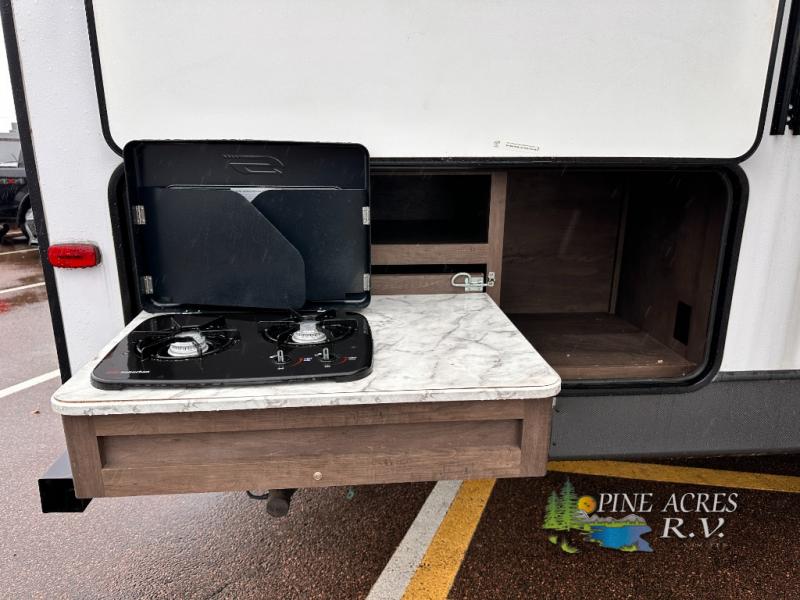This travel trailer is a haven for families and friends, comfortably sleeping up to 10 people. Whether you're planning a weekend getaway or an extended road trip, everyone will find their own cozy spot to unwind. The intelligently designed layout includes a private master bedroom, a bunkhouse for the kids, and convertible sleeping areas, ensuring that everyone has their own space. The well-equipped kitchen and spacious living area make meal preparation and relaxation a breeze, while the modern amenities provide all the conveniences you need for a memorable journey.