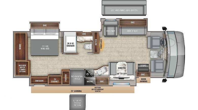 But that's not all! This Entegra Coach Emblem is packed with features to make your journey as smooth as possible. With ample storage space, you can bring along all your gear and gadgets. The RV also boasts a powerful engine and smooth handling, ensuring a comfortable ride wherever the road takes you. So, if you're ready to hit the road in style and comfort, this RV is calling your name. Don't miss out on the adventure of a lifetime!