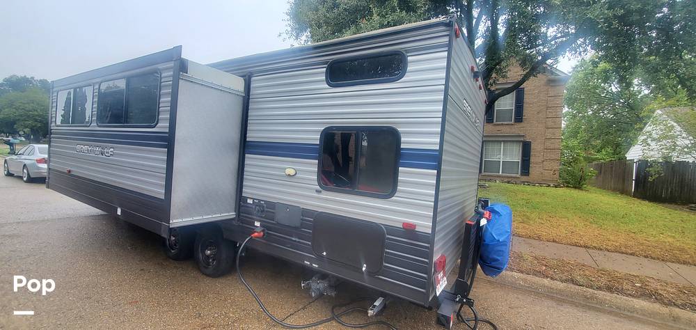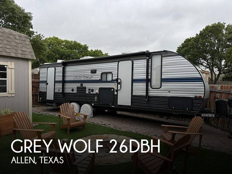Introducing the 2020 Forest River Grey Wolf 26DBH Travel Trailer, a remarkable blend of comfort and functionality designed to elevate your travel experiences. This meticulously crafted RV is an ideal choice for families and groups, offering ample space and modern amenities to ensure a memorable journey. With a length of 26 feet, this travel trailer is expertly engineered to provide a spacious interior while maintaining ease of maneuverability on the road.