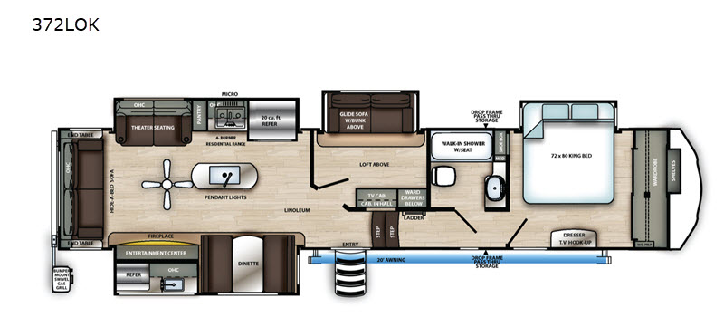 Introducing the 2020 Forest River RV Sierra 372LOK Fifth Wheel, a luxurious and spacious mobile retreat designed for those who seek comfort and elegance on the road. This meticulously crafted RV boasts an impressive length of 34 feet, offering ample space for family and friends to enjoy. With a robust weight of approximately 5,885 kilograms, this fifth wheel combines durability with style, ensuring a reliable and sophisticated travel experience.
