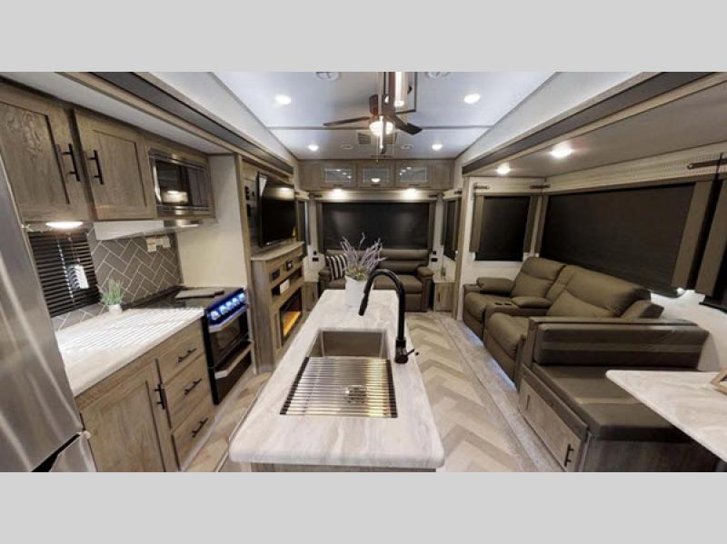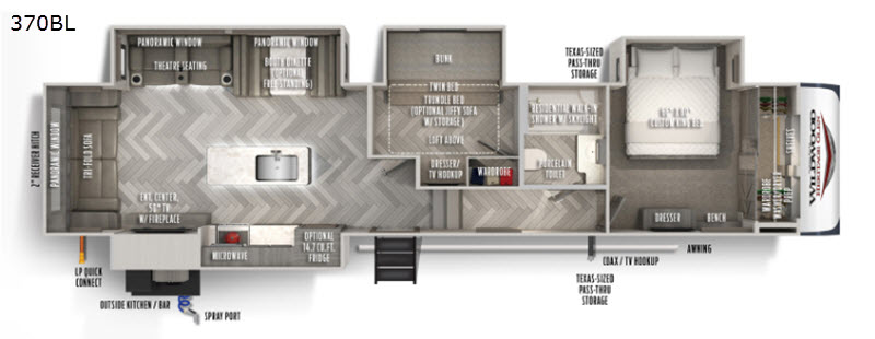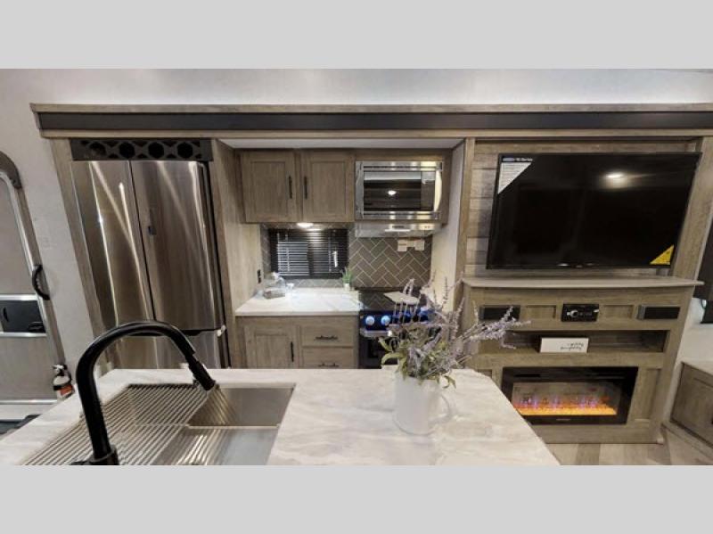 But that's not all! The Wildwood Heritage Glen 370BL is packed with features that make life on the road a breeze. From the fully equipped kitchen to the spacious living area, every detail is designed with your comfort in mind. Whether you're cooking up a feast or enjoying a movie night, this RV has got you covered. So why wait? Hit the road in style and make unforgettable memories with this fantastic fifth wheel. Your next adventure is just a drive away!