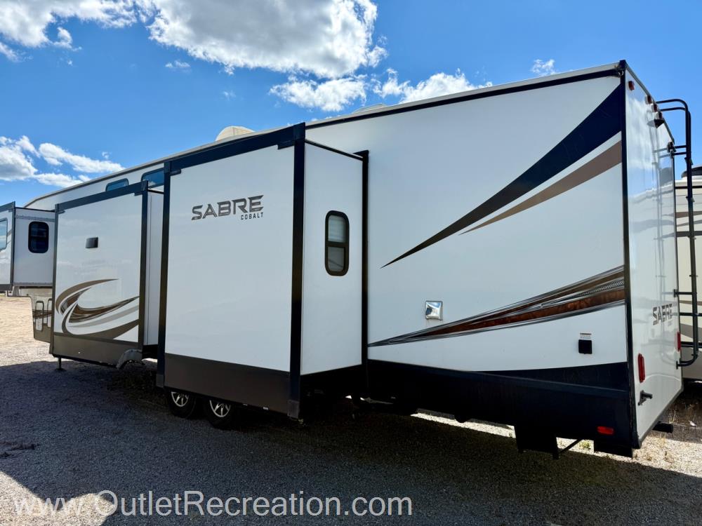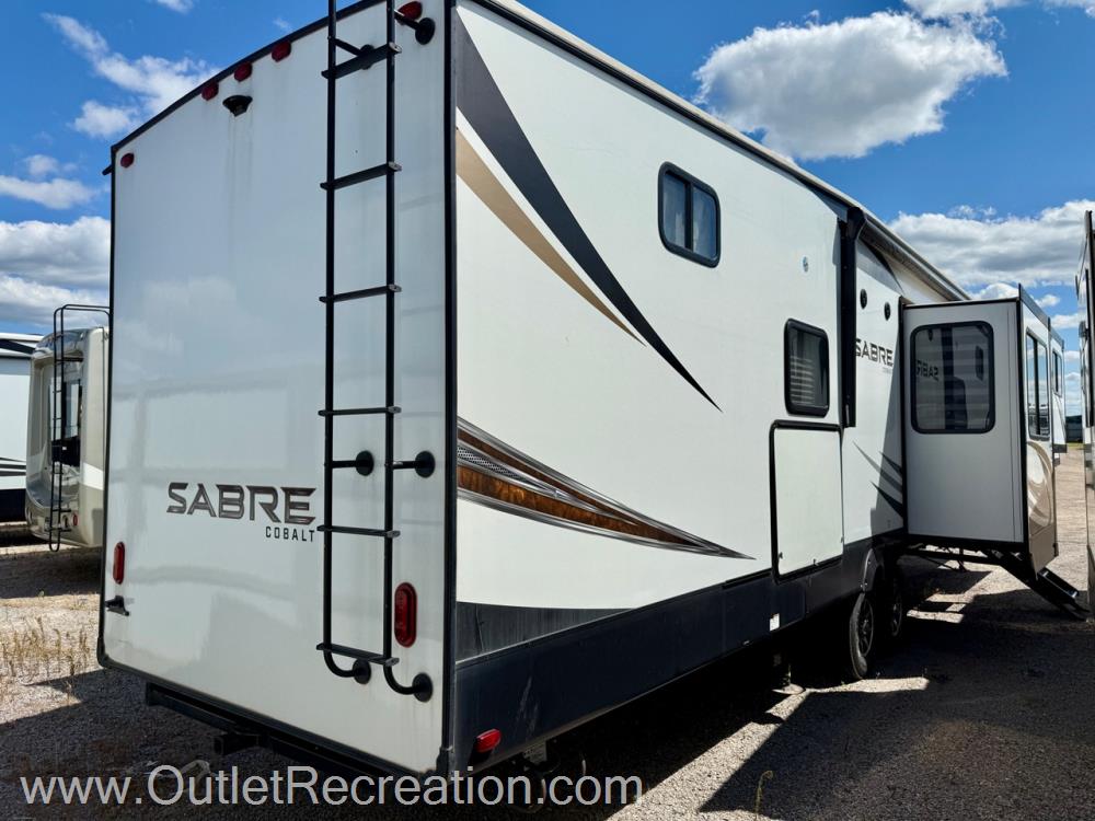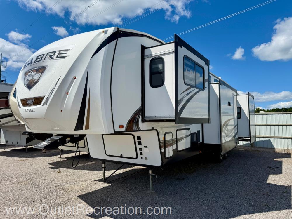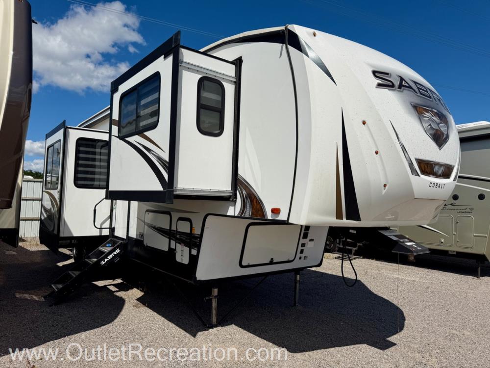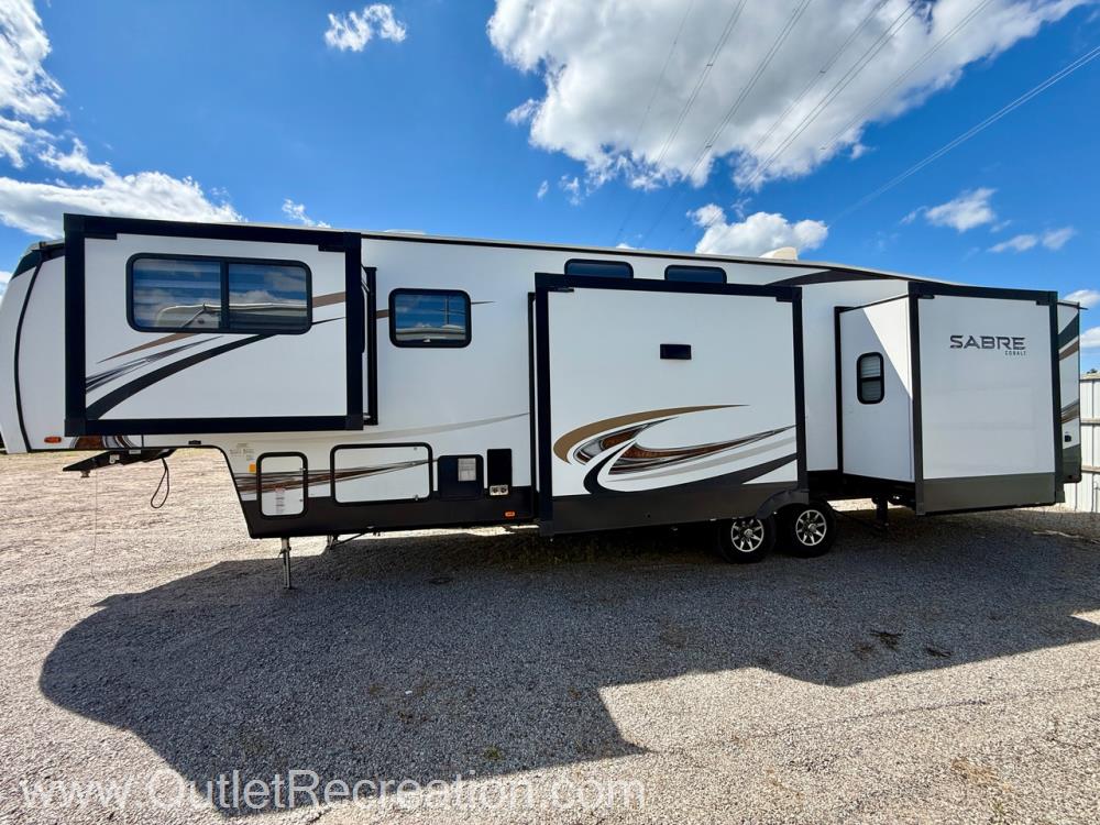Introducing the 2020 Forest River SABRE 37FLH Fifth Wheel, a pinnacle of luxury and functionality for the discerning traveler. This meticulously crafted RV is designed to elevate your camping experience, offering a perfect blend of comfort and convenience. With an impressive length of 35 feet, this fifth wheel provides ample space for both relaxation and entertainment, ensuring that every journey is as enjoyable as the destination.