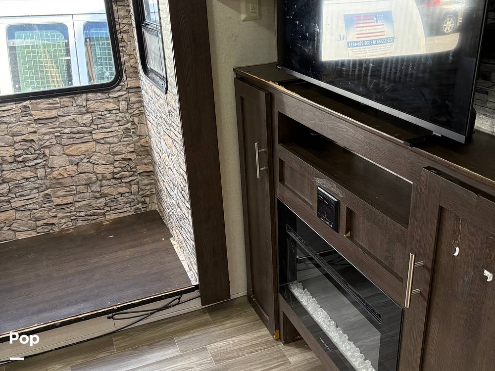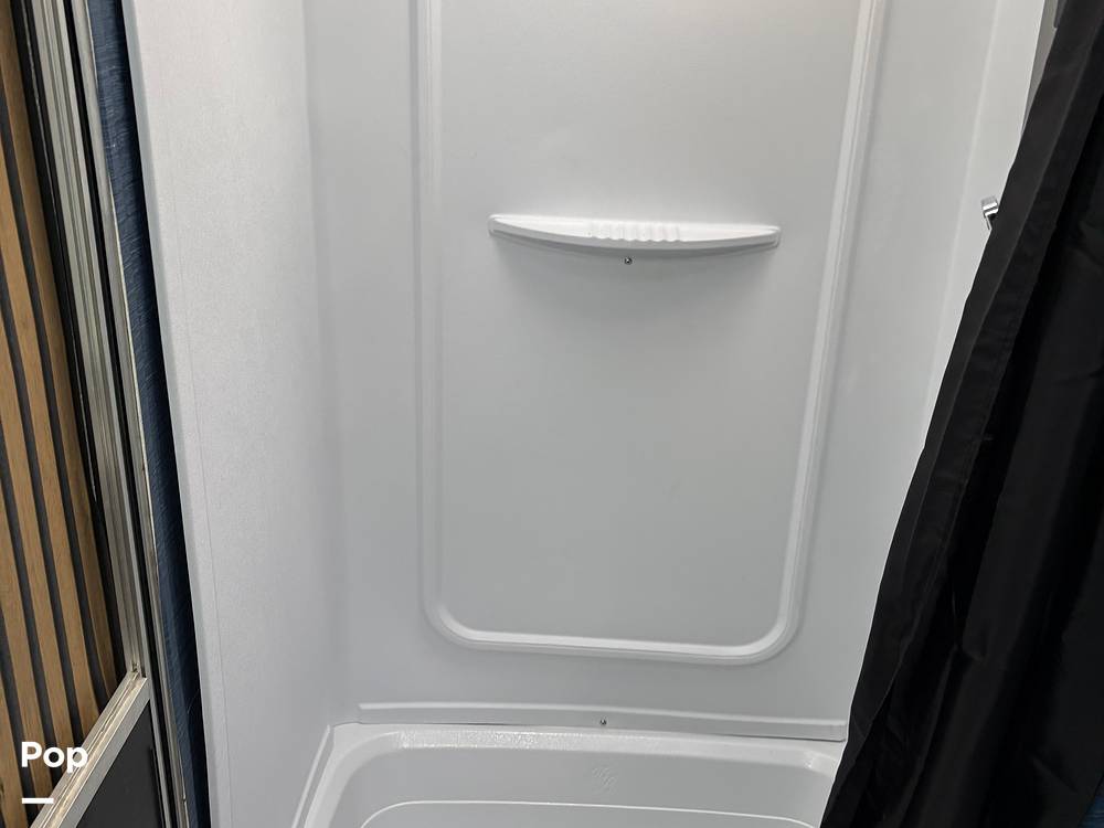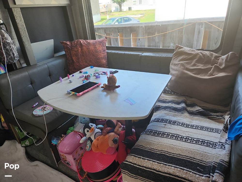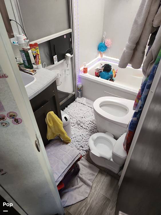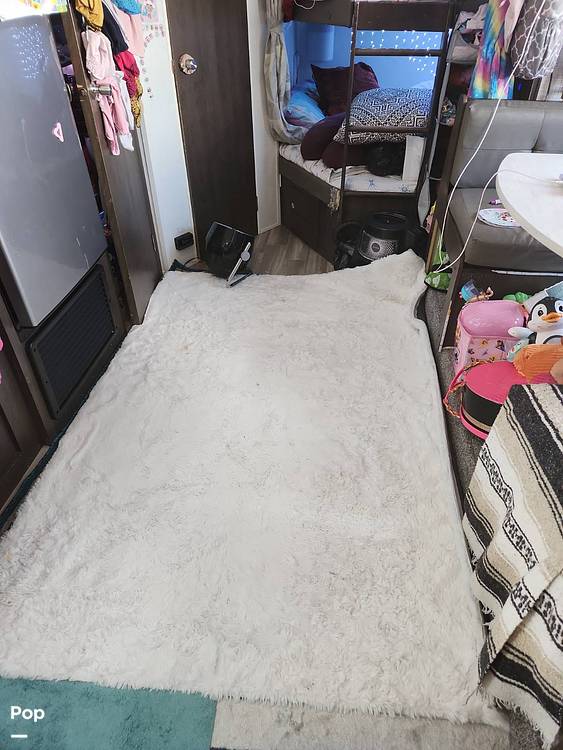 Step inside and be greeted by a thoughtfully designed interior that maximizes every square meter. The open floor plan features a fully equipped kitchen with a refrigerator, microwave, and three-burner stove, making meal preparation a breeze. The cozy dinette and plush sofa provide perfect spots for dining and relaxation, while the entertainment center ensures you can enjoy your favorite shows or movies on the go. The private master bedroom offers a queen-sized bed, while the rear bunkhouse provides additional sleeping quarters, making it perfect for families with children or guests.
