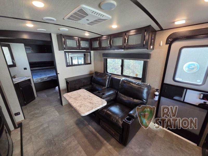 Introducing the 2020 Grand Design Imagine 2250RK Travel Trailer, a meticulously crafted RV designed to elevate your travel experiences. This model is perfect for those who appreciate both comfort and functionality in their adventures. With a length of 23 feet, this travel trailer is compact enough for easy maneuverability, yet spacious enough to provide a comfortable living space for up to three people. Its single slide-out expands the interior, offering additional room to relax and enjoy your time on the road.