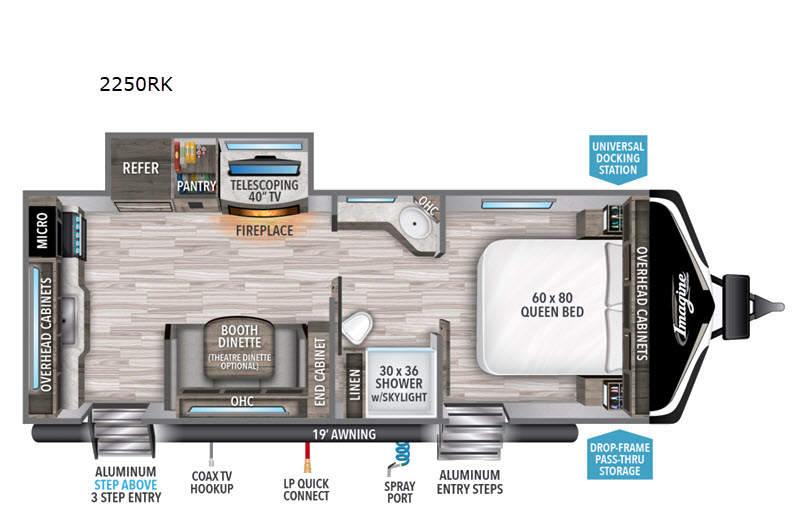 The Grand Design Imagine 2250RK is not just about practicality; it also offers a touch of luxury. The interior is finished with high-quality materials and attention to detail, creating a welcoming and stylish environment. Whether you're embarking on a weekend getaway or an extended road trip, this travel trailer provides the perfect blend of comfort, convenience, and reliability. Experience the freedom of the open road with the 2020 Grand Design Imagine 2250RK, where every journey becomes a memorable adventure.