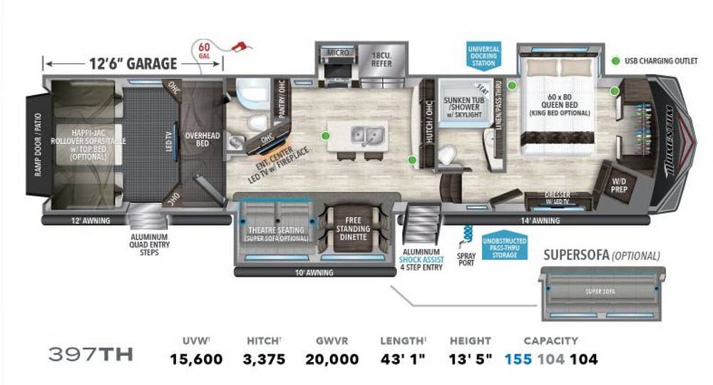 The Momentum 397TH is engineered with precision and attention to detail, featuring high-quality materials and modern amenities. Inside, you'll find a well-appointed living area with plush seating and a state-of-the-art entertainment system, ensuring relaxation after a day of exploration. The fully equipped kitchen boasts top-of-the-line appliances, including a refrigerator, stove, and microwave, making meal preparation a breeze. The spacious bathroom offers a large shower and premium fixtures, providing a touch of luxury on the road.