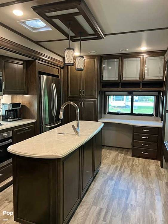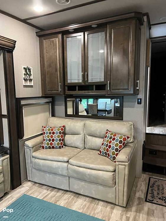 The Grand Design Solitude 344GK also offers a luxurious master suite, complete with a queen-sized bed and generous wardrobe space. The well-appointed bathroom features a spacious shower and high-quality fixtures, ensuring a comfortable and refreshing experience. With its robust construction and attention to detail, this fifth wheel is built to withstand the rigors of travel while providing a serene and comfortable retreat. Whether you're embarking on a weekend getaway or a cross-country journey, the 2020 Grand Design Solitude 344GK Fifth Wheel promises an unparalleled travel experience.