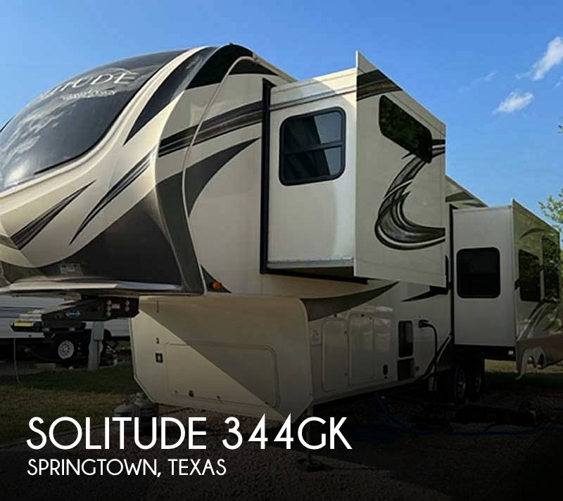 Introducing the 2020 Grand Design Solitude 344GK Fifth Wheel, a luxurious and spacious RV designed for those who seek comfort and elegance on the road. This meticulously crafted fifth wheel spans an impressive 31 feet in length, offering ample space for both relaxation and adventure. With its ability to comfortably sleep up to four people, it is an ideal choice for couples or small families looking to explore the great outdoors without compromising on the comforts of home.