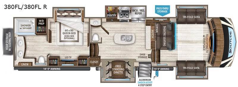 The sleeping arrangements are equally impressive, with a master suite that offers a king-size bed and plenty of storage space. Additional sleeping options include a convertible sofa and a loft area, ensuring everyone has a comfortable place to rest. The bathroom is designed with convenience in mind, featuring a large shower and all the amenities you need. With its exceptional build quality and thoughtful design, the 2020 Grand Design Solitude 380FL Fifth Wheel is ready to take you on unforgettable adventures. Don’t miss the opportunity to own this remarkable RV and create lasting memories with your loved ones.