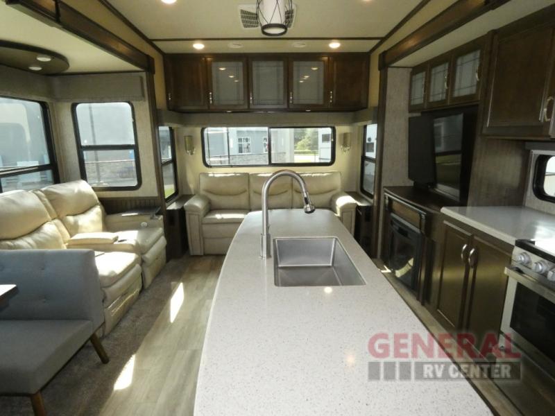 Discover the perfect blend of luxury and functionality with the 2020 Grand Design Solitude S-Class 2930RL-R Fifth Wheel. This meticulously crafted RV is designed for those who seek comfort and style on the road. With three spacious slide-outs, this model offers an expansive living area that ensures you never feel cramped, whether you're relaxing after a day of adventure or entertaining guests.