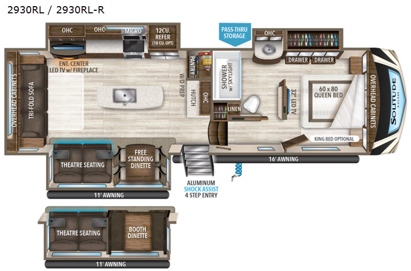 Measuring approximately 28 feet in length, the Solitude S-Class provides ample space for up to four occupants. The interior is thoughtfully designed with high-quality finishes and modern amenities, making it a true home away from home. The living area features plush seating and a state-of-the-art entertainment system, perfect for unwinding. The kitchen is equipped with top-of-the-line appliances and plenty of storage, allowing you to prepare meals with ease.