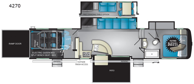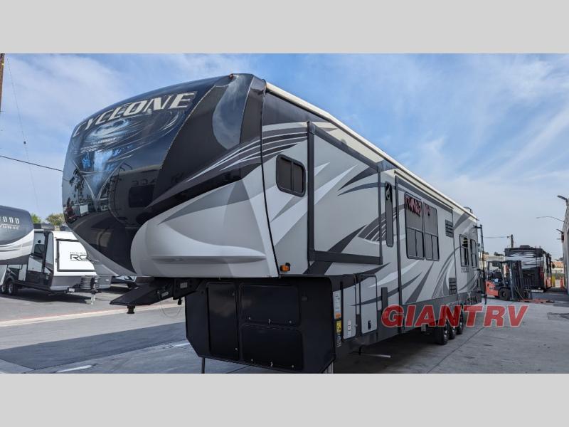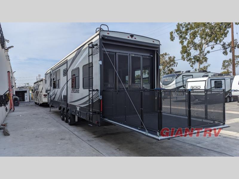 Featuring three slide-outs, the Cyclone 4270 provides an expansive living area that can comfortably sleep up to six people. Whether you're hosting a family getaway or a weekend retreat with friends, everyone will appreciate the generous space and thoughtful design. The interior is crafted with high-quality materials and modern finishes, ensuring a cozy and stylish environment. The well-equipped kitchen, inviting living area, and luxurious sleeping quarters make this RV a true home away from home.