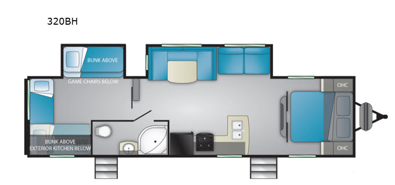 Measuring 30 feet in length, the Prowler 320BH is expertly crafted for both convenience and functionality. The interior layout is thoughtfully designed, featuring a cozy living area, a fully equipped kitchen, and a private master bedroom. The bunkhouse is a highlight, providing a dedicated space for kids or guests, making it ideal for family trips or group getaways. The RV's weight is approximately 3,623 kilograms, ensuring it is sturdy yet manageable for towing.