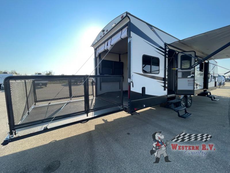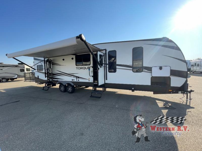 Introducing the 2020 Heartland Torque T333 Fifth Wheel, a pinnacle of luxury and functionality designed for the discerning traveler. This exceptional RV spans an impressive 38 feet in length, offering ample space for both relaxation and adventure. With a gross vehicle weight rating of approximately 5,443 kilograms, this fifth wheel is engineered for stability and ease of towing, ensuring a smooth journey to your desired destinations.