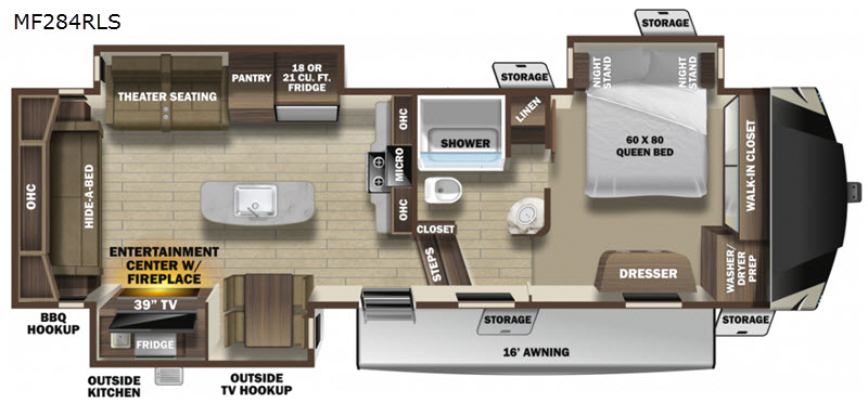 Inside, the Mesa Ridge MF284RLS comfortably sleeps four, making it perfect for family adventures or a getaway with friends. The thoughtfully designed interior features high-quality finishes and modern amenities, ensuring a home-like feel wherever you roam. The spacious living area is perfect for unwinding after a day of exploration, while the well-equipped kitchen allows you to prepare delicious meals on the road. Every detail of this RV is designed with your comfort in mind, from the cozy sleeping quarters to the inviting dining area.