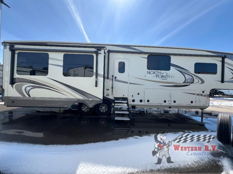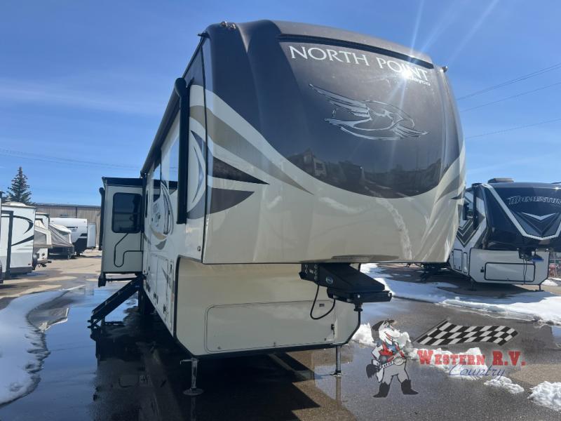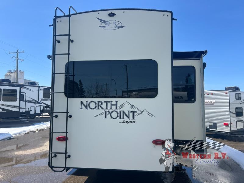 Discover the ultimate in comfort and adventure with the 2020 Jayco North Point 377RLBH Fifth Wheel. This luxurious RV is designed for families and groups who crave the freedom of the open road without sacrificing the comforts of home. With four spacious slide-outs, this model offers an expansive living area that ensures everyone has their own space to relax and unwind.