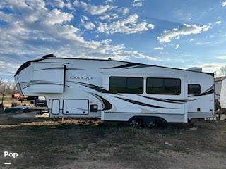 Inside, you'll find a thoughtfully designed interior that maximizes space and functionality. The Cougar 29RDB features a cozy living area with plush seating, a fully equipped kitchen with modern appliances, and a dining area perfect for family meals. Sleeping arrangements are versatile, with a master bedroom, bunk beds, and convertible furniture to ensure everyone has a comfortable place to rest. The bathroom is well-appointed with all the essentials, providing convenience and privacy on the road.