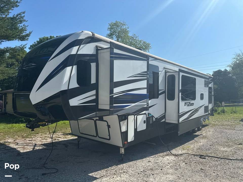 Introducing the 2020 Keystone Fuzion 429 Fifth Wheel, a luxurious and versatile recreational vehicle designed to elevate your travel experiences. This exceptional RV, measuring an impressive 37 feet in length, combines modern amenities with ample space, making it the perfect choice for families and groups seeking comfort and convenience on the road. With the capacity to sleep up to seven individuals, this fifth wheel ensures that everyone can enjoy a restful night's sleep after a day of adventure.