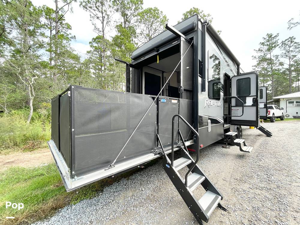 Introducing the 2020 Keystone Raptor 354 Fifth Wheel, an exceptional choice for those seeking luxury and adventure on the road. This meticulously crafted RV offers a harmonious blend of comfort, functionality, and style, making it an ideal companion for both short getaways and extended journeys. With its robust design and premium features, the Keystone Raptor promises an unparalleled travel experience.