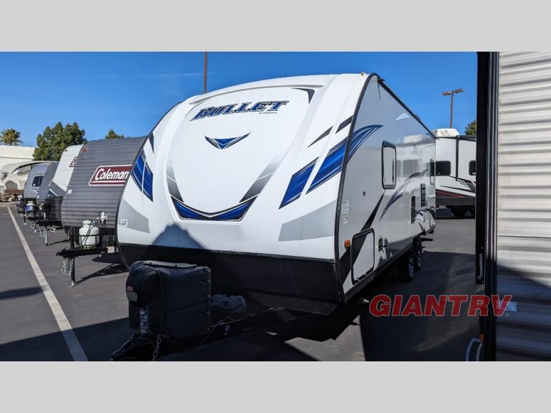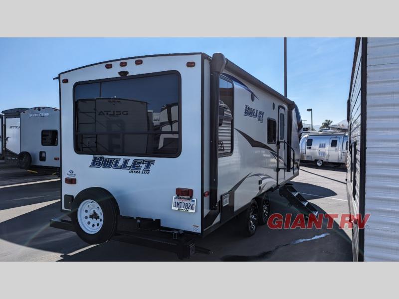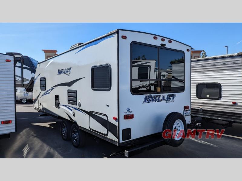 Inside, the Bullet 210RUDWE offers a cozy retreat that comfortably sleeps up to four people. The intelligently designed layout maximizes space, featuring a plush queen-sized bed and a convertible dinette that transforms into an additional sleeping area. The modern kitchen is equipped with all the essentials, including a refrigerator, microwave, and a two-burner stove, allowing you to prepare delicious meals on the go. Ample storage solutions ensure that all your travel necessities are neatly organized and within reach.