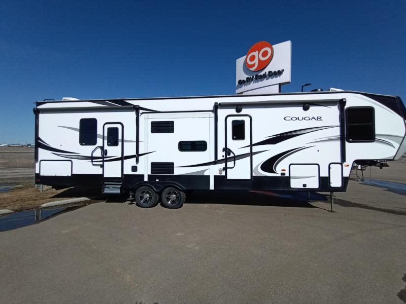 Discover the ultimate in comfort and adventure with the 2020 Keystone RV Cougar 364BHL Fifth Wheel. This exceptional RV is designed to elevate your travel experience, offering a perfect blend of luxury and practicality. With three spacious slide-outs, this Cougar expands to provide ample living space, ensuring you and your family can relax in style. Measuring approximately 32 feet in length, this RV is expertly crafted to offer a roomy interior without compromising on maneuverability.