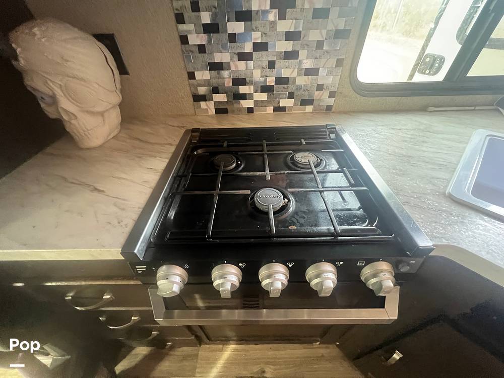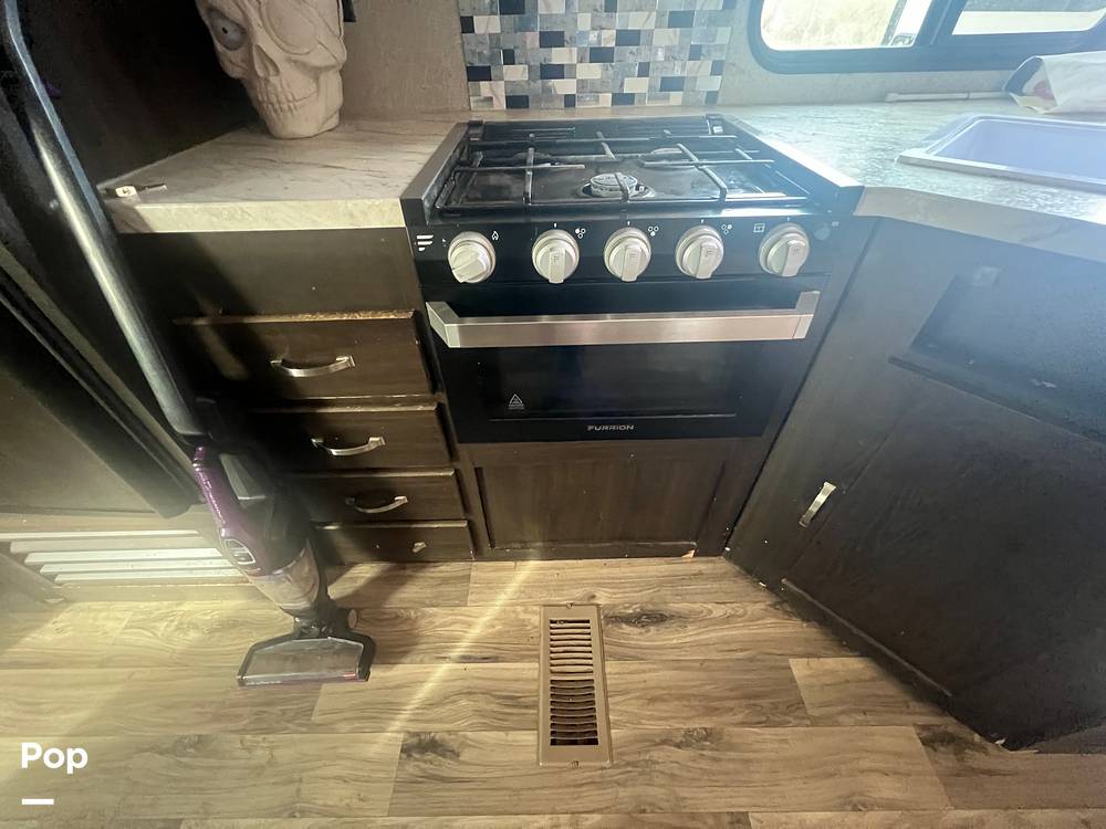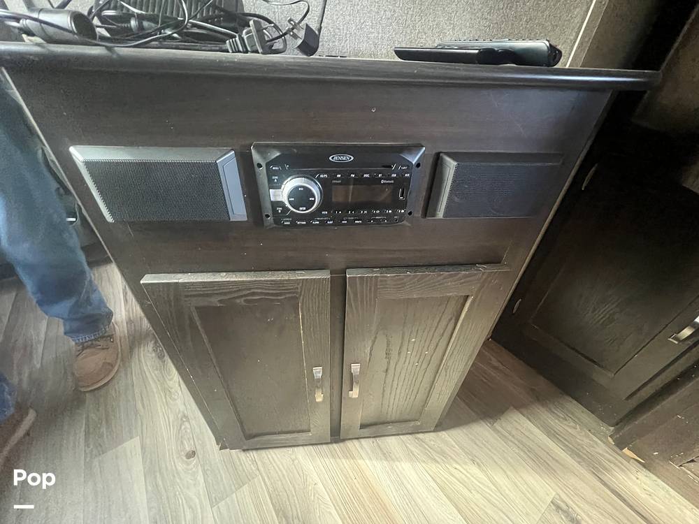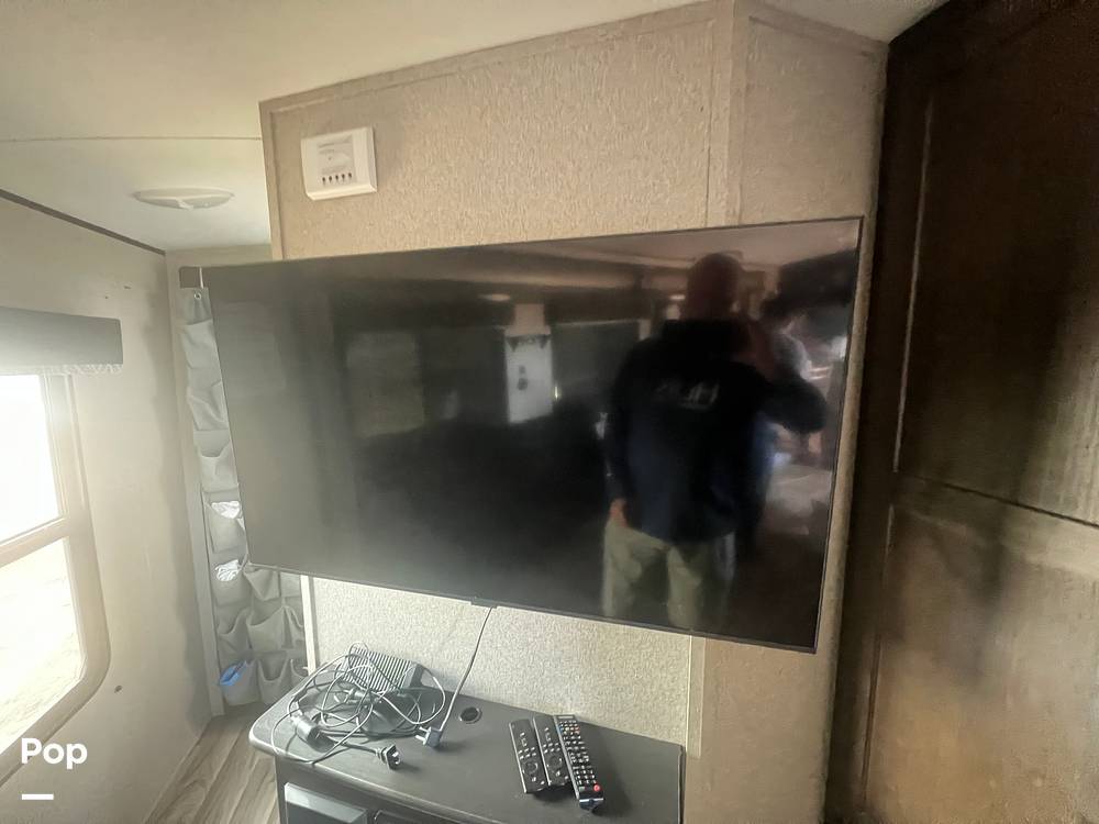Step inside, and you'll be greeted by a warm and inviting interior that feels just like home. The well-appointed living area features plush seating, perfect for relaxing after a day of adventure. The fully equipped kitchen comes with all the essentials, including a refrigerator, stove, and microwave, allowing you to whip up delicious meals on the go. The dinette provides a cozy spot for family meals or game nights, while the entertainment center ensures everyone stays entertained, rain or shine.
