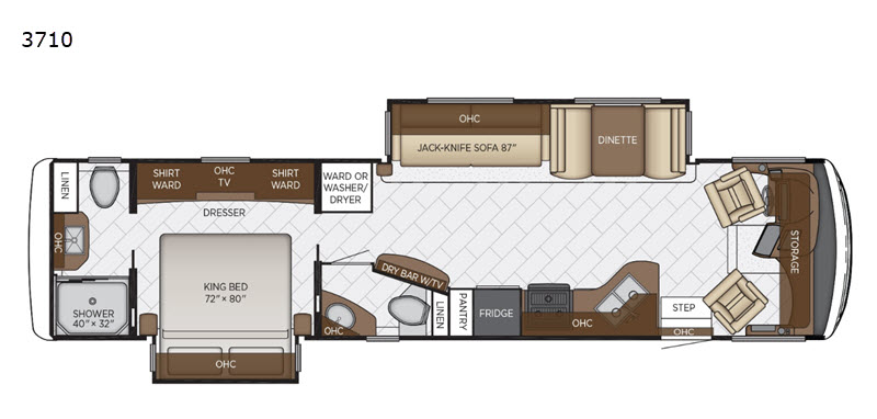 The Canyon Star 3710 features two slide-outs that significantly enhance the living area, creating a spacious and inviting environment for you and your companions. Designed to comfortably sleep up to five people, this RV is ideal for family trips or getaways with friends. The interior is thoughtfully designed with high-quality materials and finishes, providing a sophisticated ambiance that complements its practical layout. Whether you're preparing meals in the fully-equipped kitchen or unwinding in the cozy living area, every detail is tailored to enhance your travel experience.