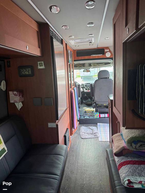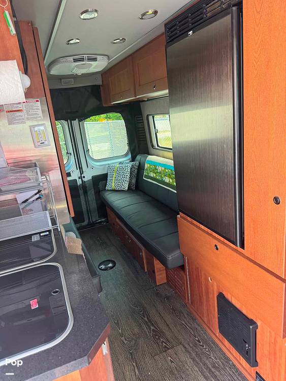 Inside, the Roadtrek Zion comfortably sleeps up to three people, making it perfect for small families or couples. The interior is thoughtfully designed to maximize space and functionality, featuring a well-equipped kitchenette with a refrigerator, microwave, and two-burner propane stove. The living area is both cozy and practical, with a convertible sofa that easily transforms into a comfortable sleeping area. Additionally, the RV is equipped with a compact bathroom, complete with a toilet, shower, and sink, ensuring you have all the conveniences of home while on the road.