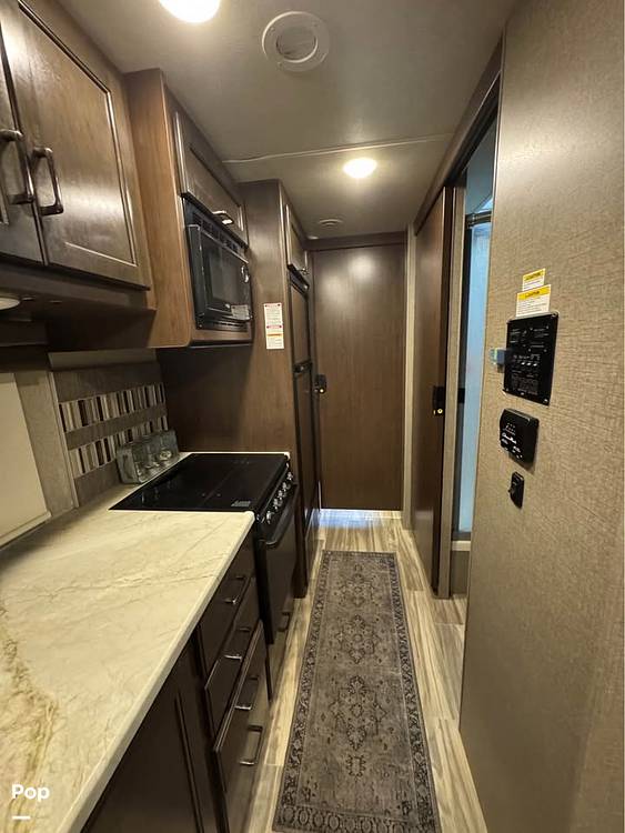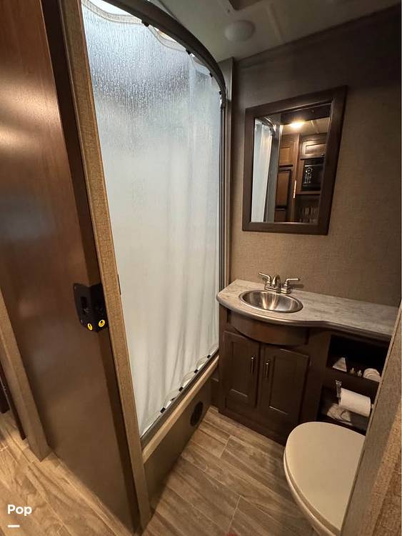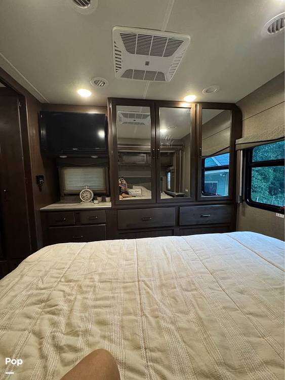 Measuring an impressive 29 feet in length, the A.C.E. 33.1 provides ample space for relaxation and entertainment. Inside, you'll find a well-appointed living area featuring plush seating and a fully equipped kitchen with modern appliances, including a refrigerator, microwave, and stove. The thoughtful layout includes a cozy dining area, perfect for enjoying meals together after a day of adventure. The RV also boasts a private master bedroom with a comfortable queen-sized bed, ensuring a restful night's sleep. Additional sleeping options include a convertible sofa, a drop-down overhead bunk, and a dinette that transforms into a bed, accommodating everyone with ease.