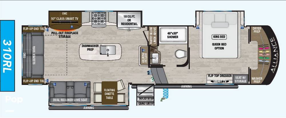 Step inside to discover a thoughtfully designed living space that boasts high-quality finishes and modern amenities. The Paradigm 310RL features a well-appointed kitchen equipped with state-of-the-art appliances, ensuring you can prepare meals with ease. The living area is designed for relaxation, offering plush seating and a large entertainment center, perfect for unwinding after a day of exploration. The sleeping quarters provide a restful retreat, with a master bedroom that includes a luxurious queen-sized bed and ample storage space. Additionally, the convertible sofa bed in the living area offers extra sleeping accommodations for guests.
