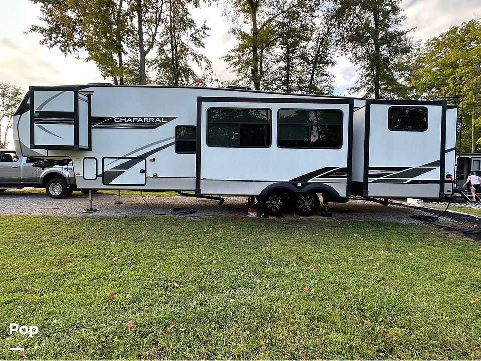 Introducing the 2021 Coachmen Chaparral 367BH Fifth Wheel, a remarkable blend of luxury, comfort, and practicality, designed to elevate your travel experiences. This meticulously crafted RV spans an impressive 35 feet in length, offering ample space for both relaxation and adventure. With its capacity to comfortably sleep up to 10 individuals, it is the ideal choice for families or groups seeking a home away from home.