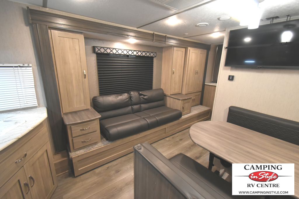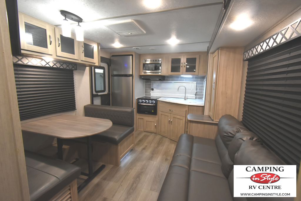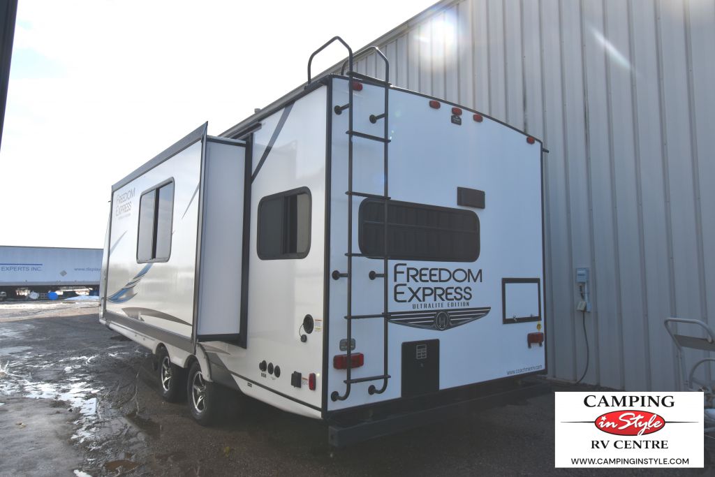 The Freedom Express Ultra-Lite features a single slide-out that expands your living area, providing a roomy and inviting atmosphere. Inside, you'll find accommodations to comfortably sleep up to six people, ensuring everyone has a cozy place to rest after a day of exploration. The well-appointed kitchen and dining area make meal preparation and dining a breeze, while the modern amenities ensure you have all the comforts of home on the road.