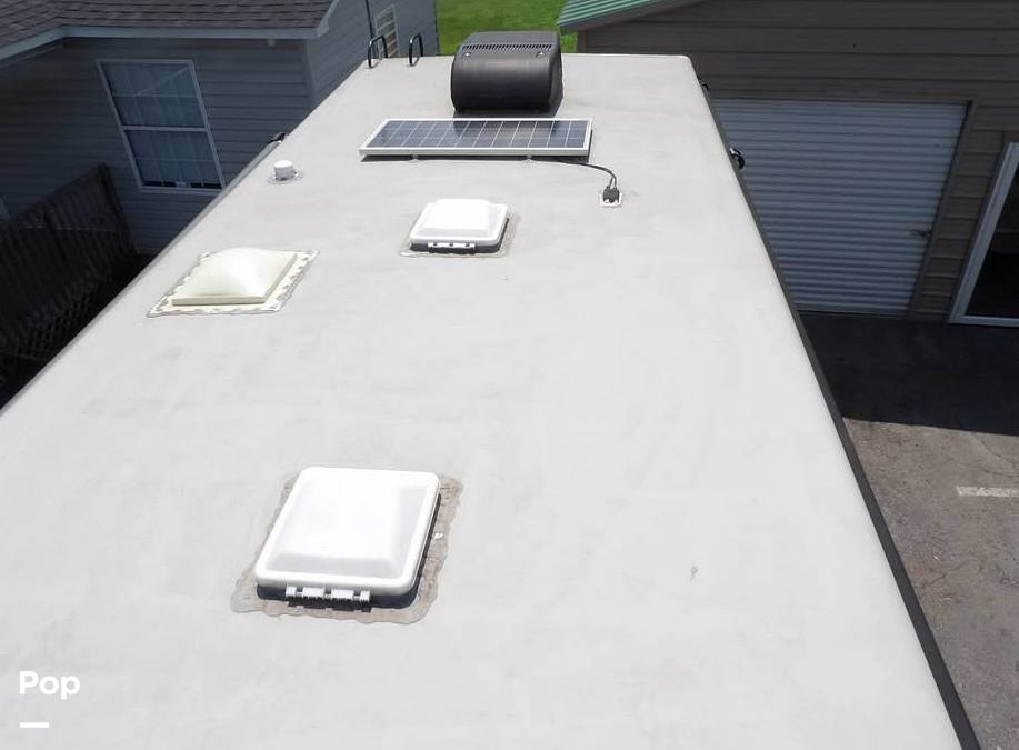Inside, you'll find a thoughtfully designed living space that includes a fully equipped kitchen, complete with modern appliances and ample storage. The sleeping arrangements are versatile, featuring a master bedroom with a cozy queen bed, convertible dinette and sofa beds, and a set of bunk beds, ensuring everyone has a comfortable place to rest. The bathroom is well-appointed with a shower, sink, and toilet, providing all the comforts of home on the road.